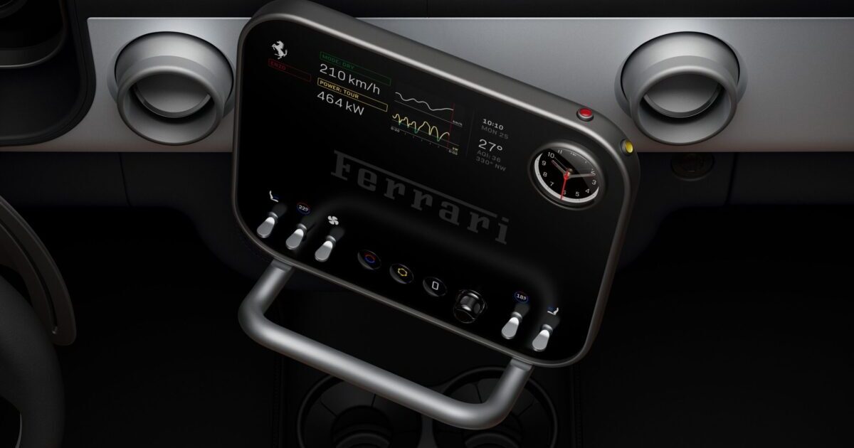 Bundan əlavə, Ferrari avtomobilin interfeysinin əsas elementlərini də nümayiş etdirib. Dizayn üzərində Coni Ayv və Mark Nyusonun LoveFrom studiyası çalışır, ilkin konsepsiya isə Ferrari dizaynerləri tərəfindən Flavio Manzoninin rəhbərliyi altında hazırlanıb.